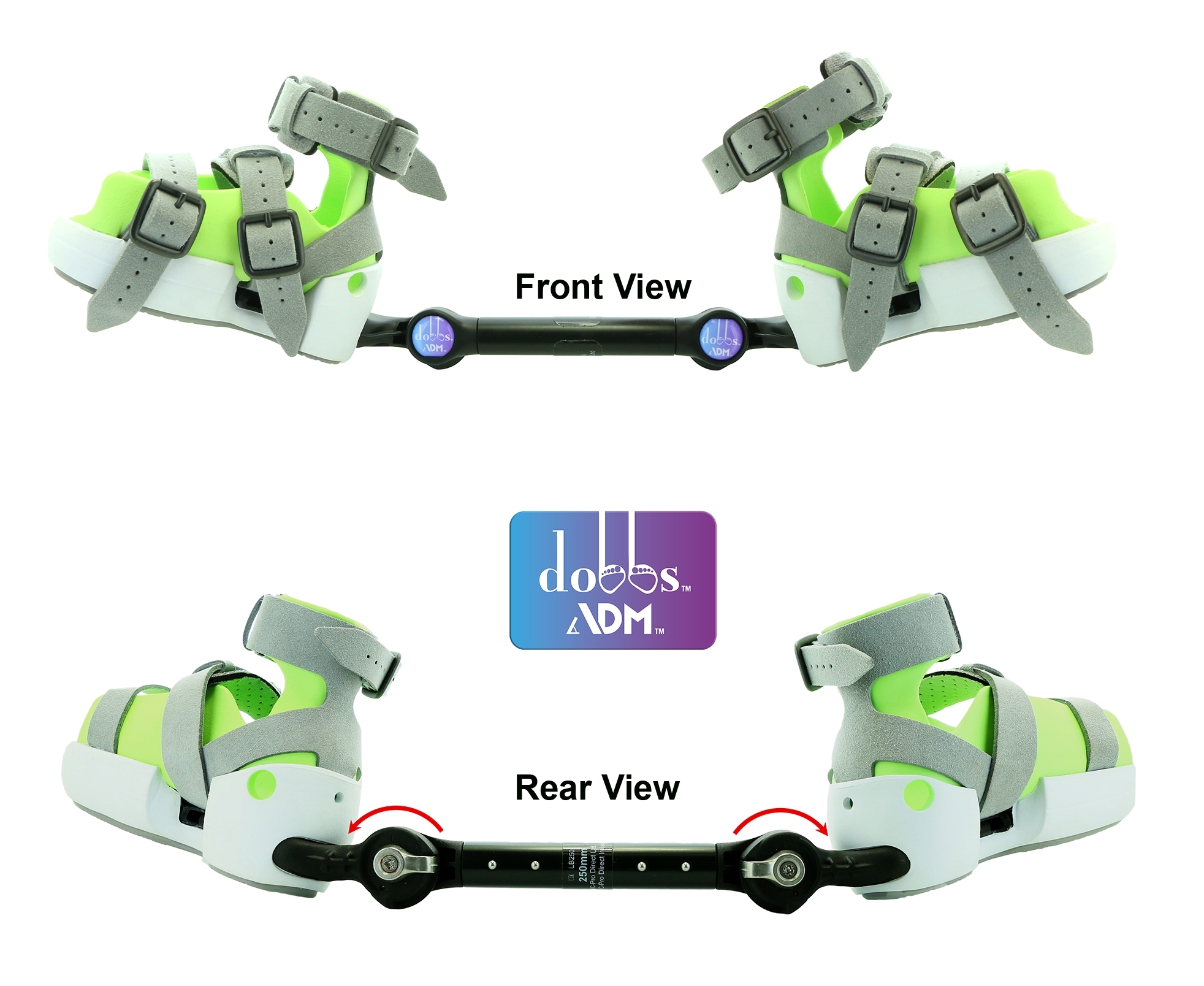 Pair of ADM Night Use AFOs and Spring Assisted Articulating Dobbs ADM External Rotation Bar
